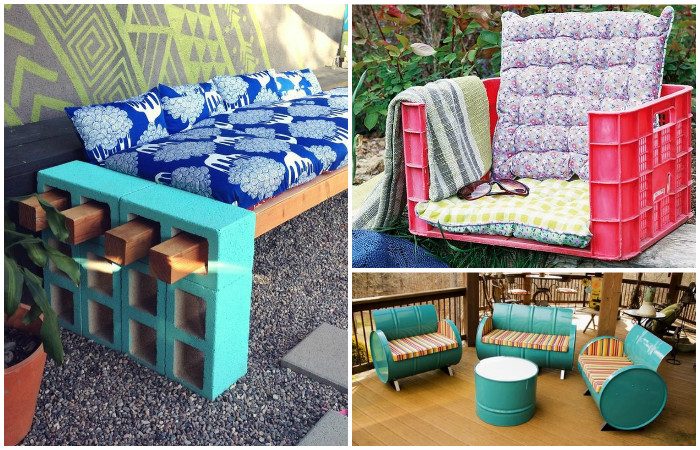 Пластиковые бутылки — бросовый материал, из которого, несмотря на его дешевизну, можно сделать массу полезных вещей. Например, садовую мебель своими руками. Просто свяжите бутылки, закрытые крышками, веревками или скрепите прозрачным скотчем. Если получившаяся конструкция кажется недостаточно недостаточно эстетичной, то накройте ее пледом. Замаскировать пластик помогут и текстильные чехлы для мебели.