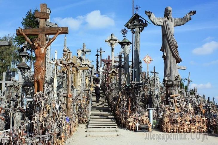 Гора крестов расположена в 12 километрах к северу от небольшого промышленного города Шяуляй. Является национальным литовским местом паломничества. Это небольшой холм, полностью покрытый крестами, которые представляют христианскую преданность и мемориал литовскому национальному самосознанию. Когда появились первые кресты – неизвестно, и несмотря на попытки властей снести мемориал, распятий здесь с каждым годом появляется всё больше. Хотя сам холм может и не очень вас пугает, однако таинственное появление новых крестов заставляет холодок пробежать спине.