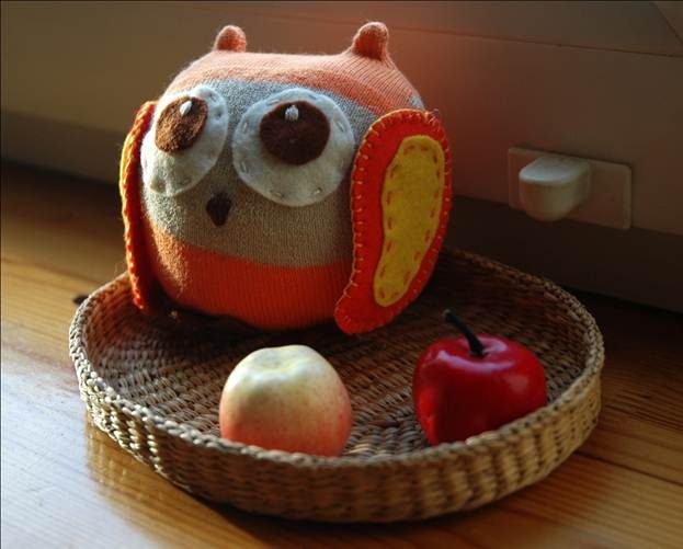 Когда все детали заняли свое место, сова готова. И не скажешь, что еще недавно это был ничем не примечательный носок!