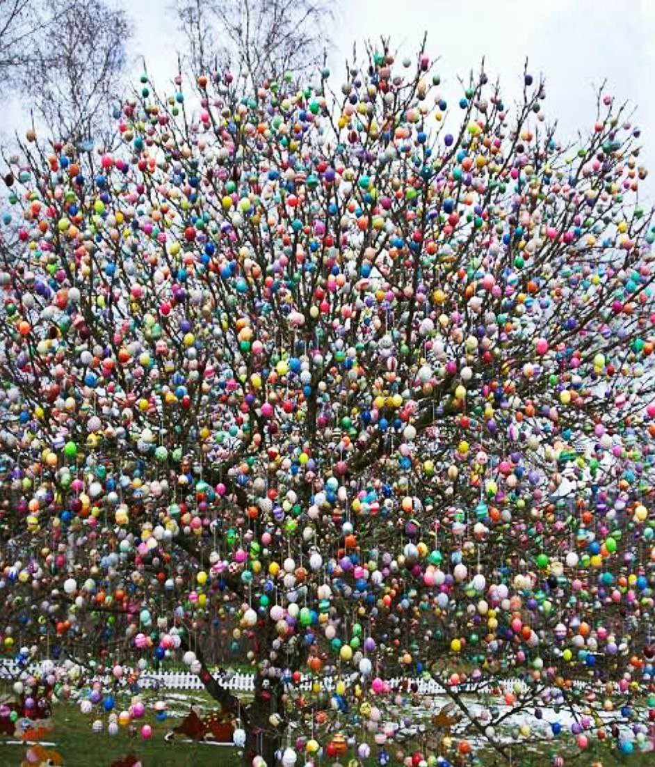 Через 20 лет он вместе с детьми украсил куст в своем саду 18 яйцами. С годами дерево росло, и количество яиц значительно увеличилось. Сегодня на дереве не менее 10 000 яиц. На его украшение уходит несколько недель, и каждый год туристы съезжаются полюбоваться им.