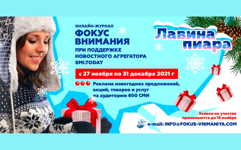 С  27 ноября по 31 декабря стартует новогодний спецпроект #ЛАВИНА_ПИАРА для авторов и экспертов журнала “Фокус внимания”  в рамках программы продвижения в СМИ.