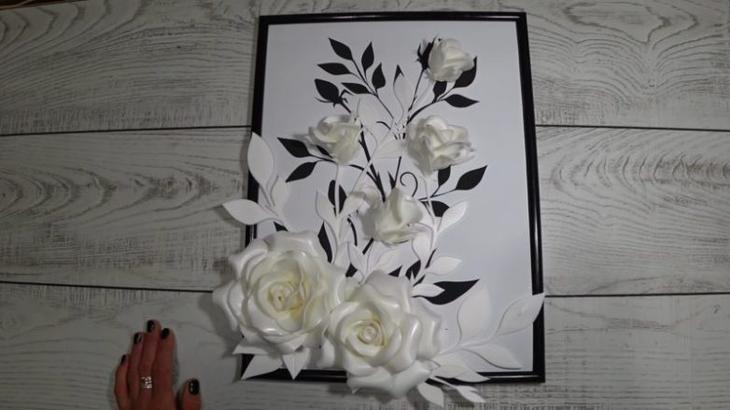 Когда смотришь на эту чудесную 3D картину, сложно поверить, что сделана она была своими руками из изолона. Такая невероятная красота, очень стильная вещица, с успехом украсит любой дом! Для работы приготовьте следующие материалы: черный фоамиран; бумага А3; рама для самой картины; проволока; белого цвета изолон 2 мм; горячий клей; строительный фен. Из бумаги А3 вырежьте […]