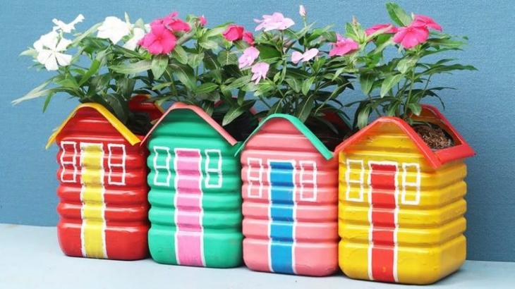 Из обыкновенных пластиковых бутылок можно сделать чудесное украшение для сада — оригинальные горшки для цветов в виде домиков. Убедитесь сами, насколько это просто, быстро и интересно!