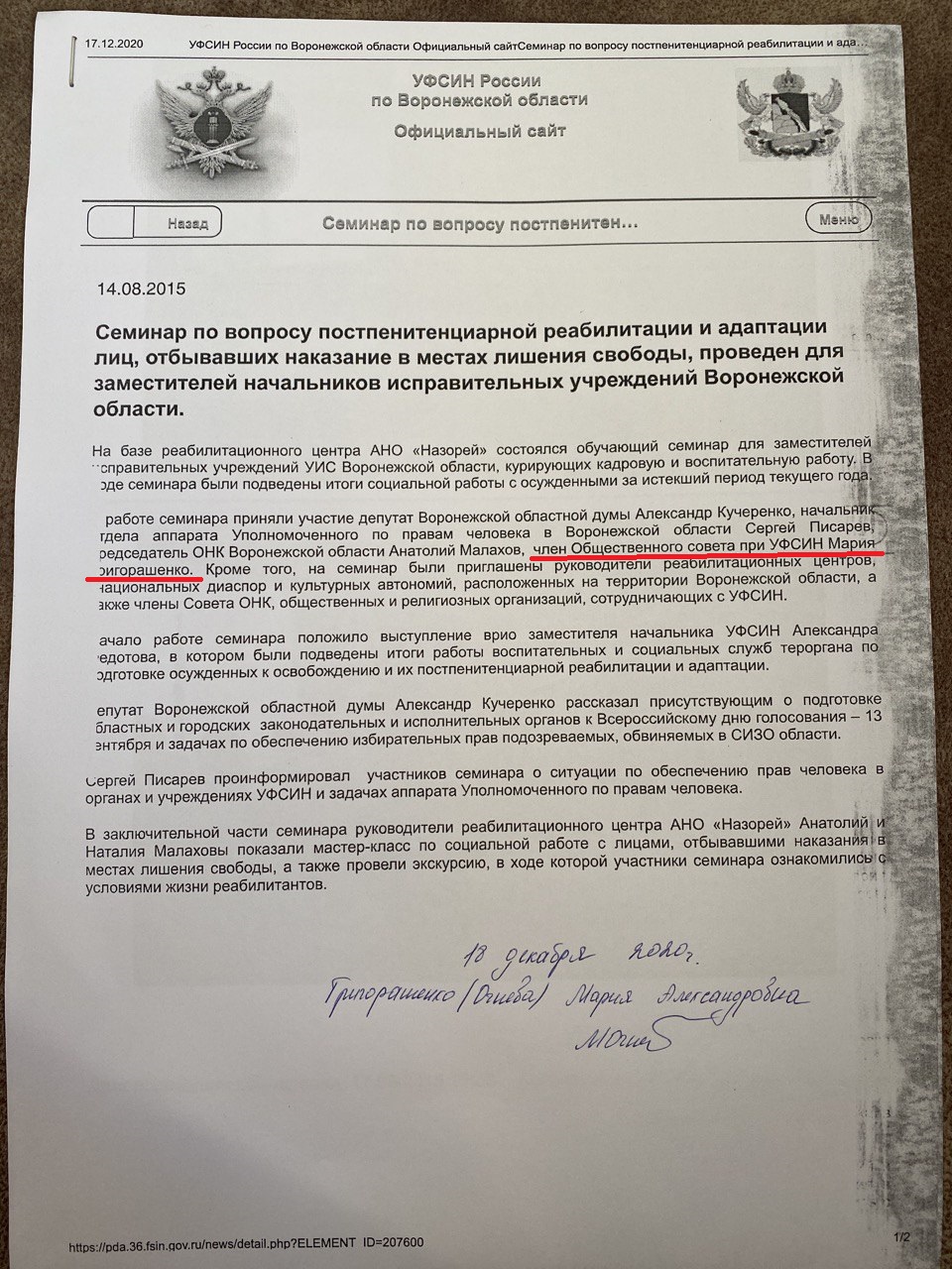 Эти два факта и стали основой решения Совета при Президенте России по правам человека, где находятся более тридцати НЕЗАВИСИМЫХ экспертов права федерального значения, которые далеки от коррумпированной возни в прокурорско-судебной системе Воронежской области.