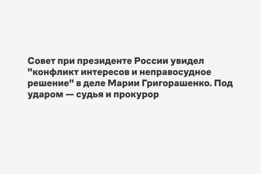 СОВЕТ ПРИ ПРЕЗИДЕНТЕ РОССИИ УВИДЕЛ “КОНФЛИКТ ИНТЕРЕСОВ И НЕПРАВОСУДНОЕ РЕШЕНИЕ” В ДЕЛЕ МАРИИ ГРИГОРАШЕНКО. ПОД УДАРОМ — СУДЬЯ И ПРОКУРОР. 26 февраля 2019
