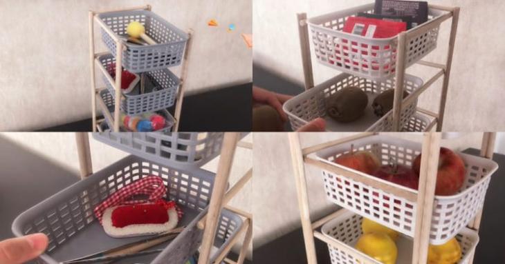 А ниже вы можете посмотреть подробное видео о том, как сделать такую полочку из деревянных палочек и пластиковых корзин.
