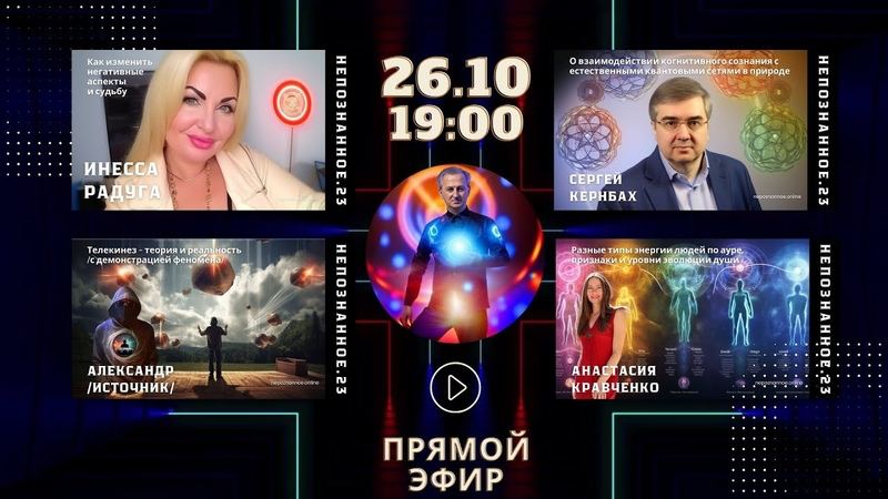 26 октября, 19:00 – 21:00 мск на ТВ-Экстра пройдет стрим, посвященный Конференции Непознанное. В эфире регрессолог и ясновидящая Анастасия Кравченко, парапсихолог Инесса Радуга, исследователь AI Сергей Кернбах и мастер телекинеза – Александр. Также к эфиру подключится бизнес-астролог и организатор фестиваля духовных практик «Я тебя вижу» Александра Секачева. Среди участников эфира разыгрываются: Новые книги Марины Кейлиной […]