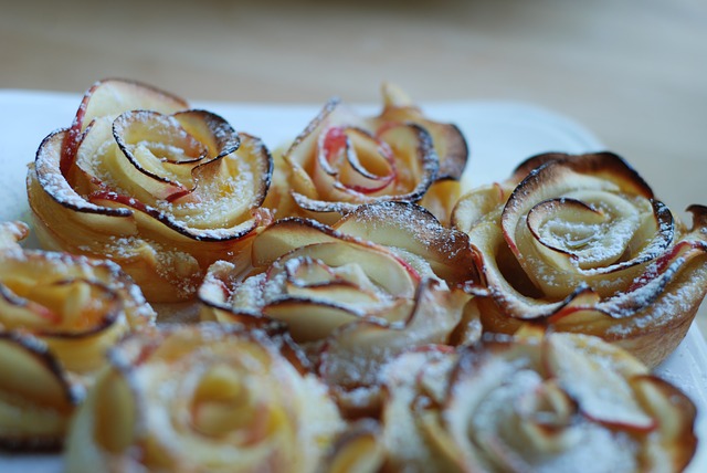 Роскошные розы из яблок и слоеного теста