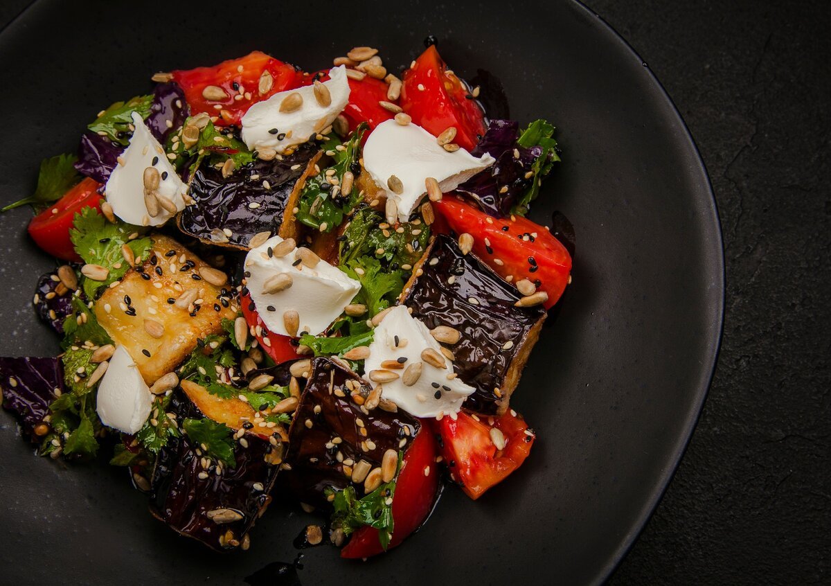 Теплый салат с хрустящими баклажанами по-грузински