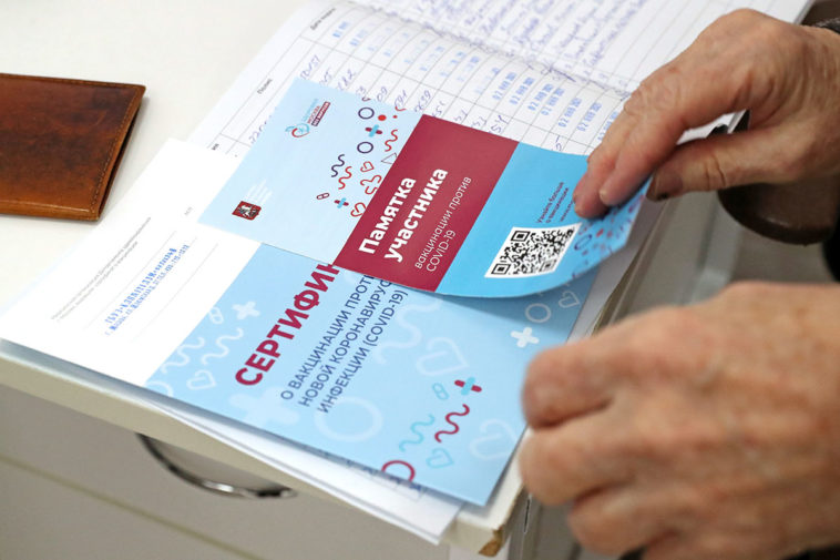 Сертификат о вакцинации против коронавируса COVID-19 вакциной «Спутник V». Фото: Сергей Савостьянов / ТАСС