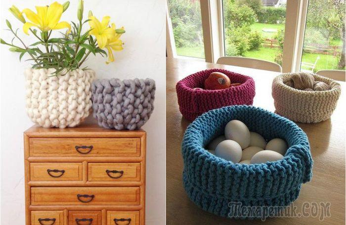 Вязаные корзины, которые круто украсят интерьер и влюбят в себя с первого взгляда