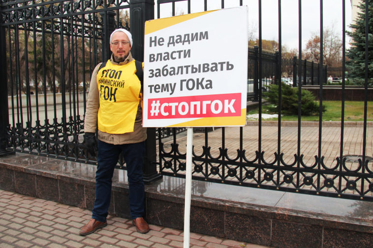 Василий Московец во время пикета против строительства Томинского ГОКа. Фото: Валентина Мальковская / Facebook