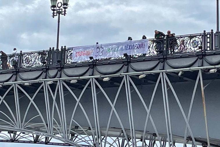Участники Pussy Riot вывесили на Патриаршем мосту баннер с требованием освободить Алехину